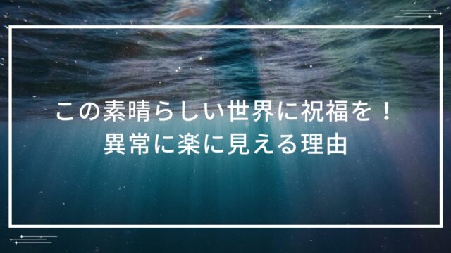 この素晴らしい世界に祝福を!が異常に楽に見える理由